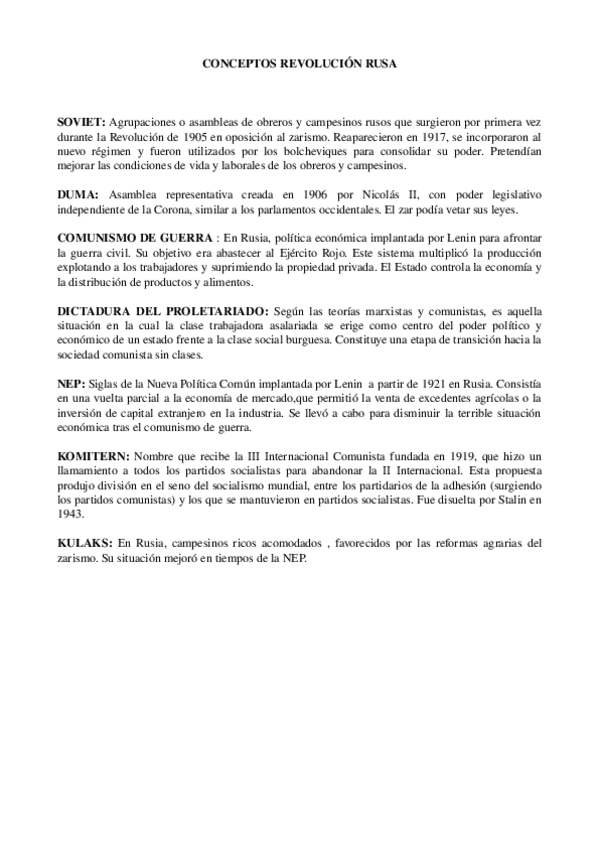 He publicado nuevos apuntes de 1º Historia del Mundo Contemporáneo: CONCEPTOS-REV.-RUSA.odt