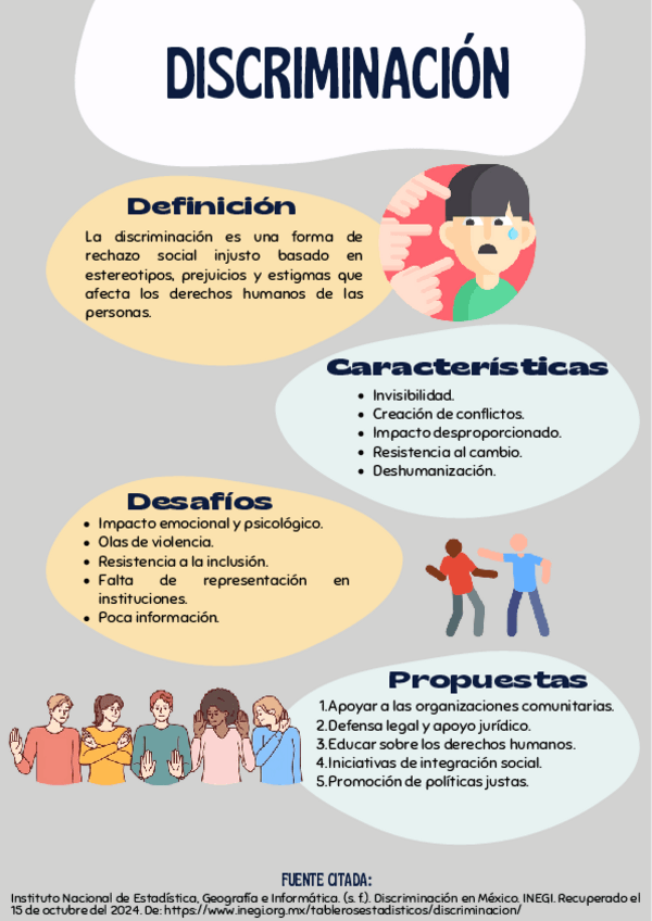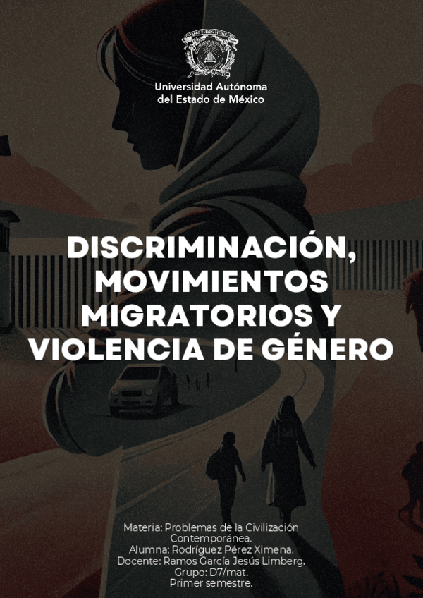 Documento que contiene información sobre la discriminación, movimientos migratorios y violencia de género. Contiene definición, características, desafíos que presenta y propuestas de solución