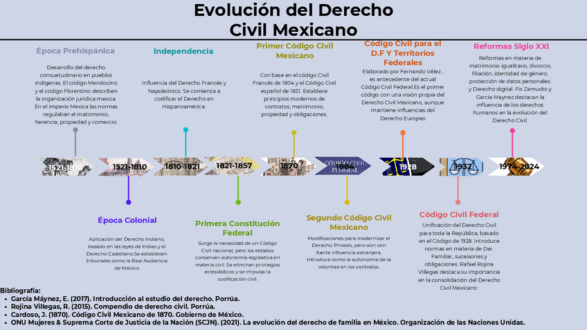 Líneas del tiempo, mapa mental y cuadro sinóptico sobre la evolución del derecho civil y familiar