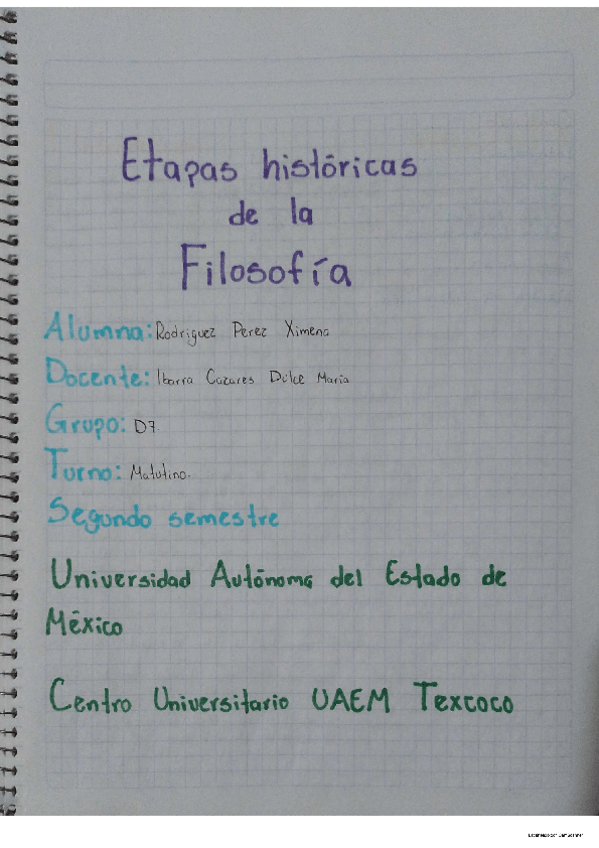Etapa griega, medieval y contemporánea. Contiene portada, índice, introducción, desarrollo y fuentes.
