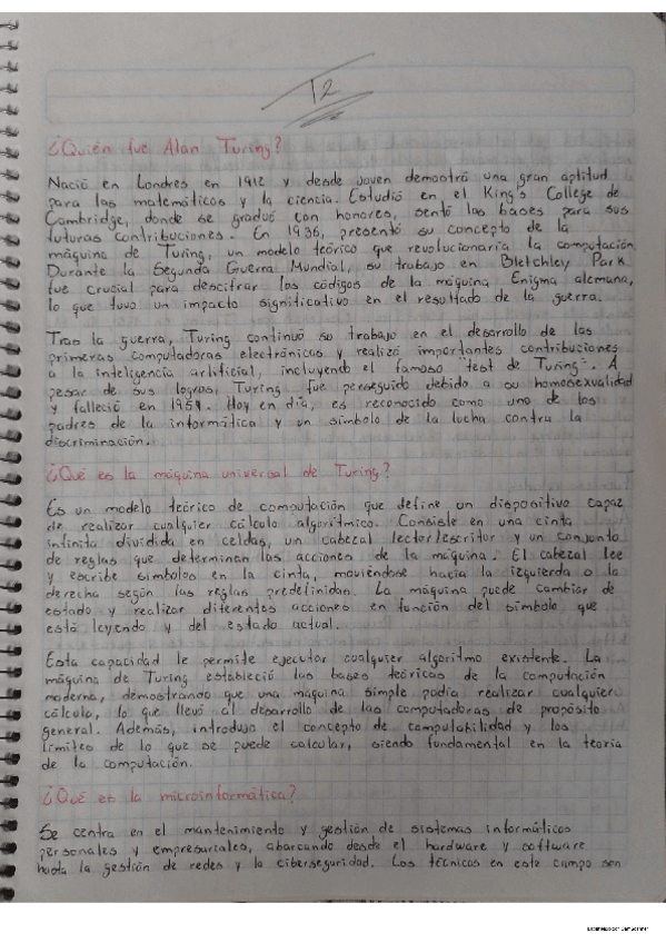 Alan Turing, su máquina universal, microinformática e inteligencia artificial