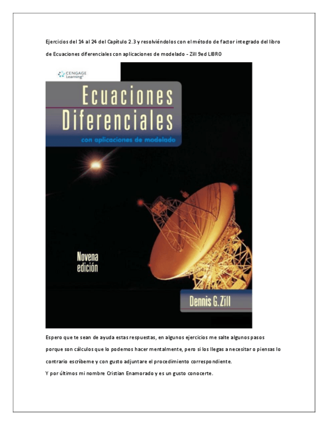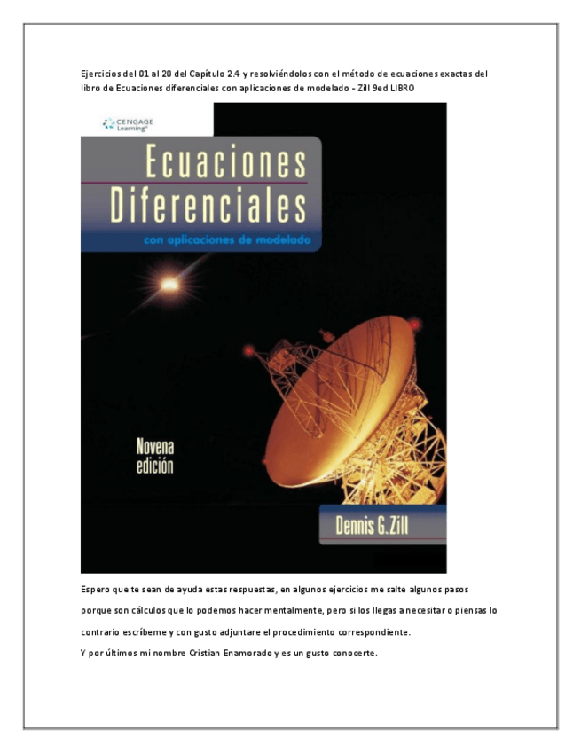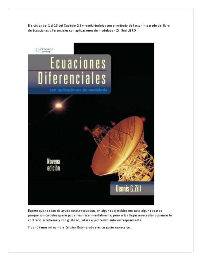 Estaré subiendo las soluciones de los ejercicios de este libro de Ecuaciones diferenciales con aplicaciones de modelado - Zill 9ed LIBRO