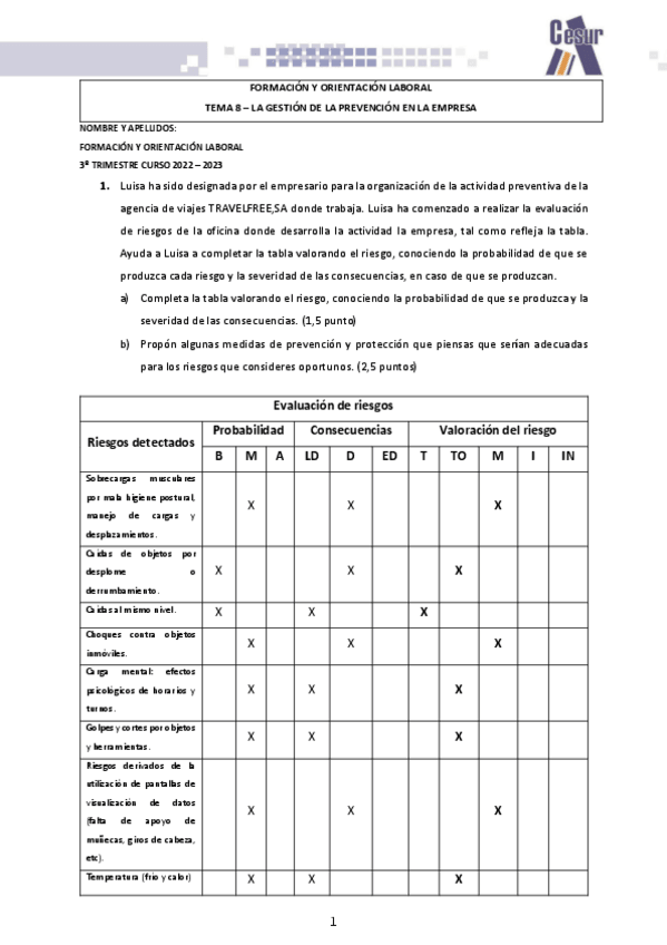 He publicado nuevos ejercicios de Formación y orientación laboral: 1 EVALUACIÓN