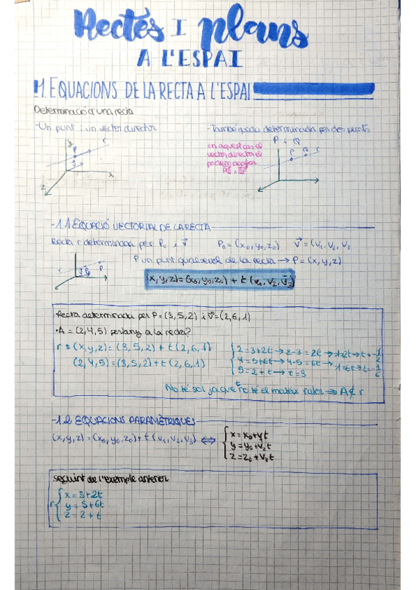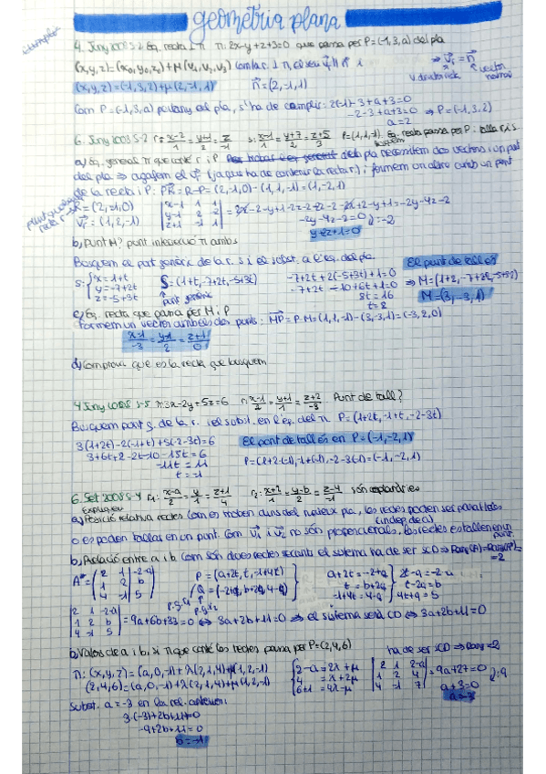 Teoria amb exercicis explicats. Rectes i plans a l'espai inclou un formulari al final del document.