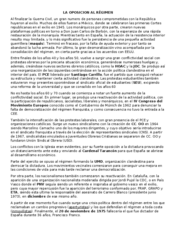 Franquismo hasta la transicion