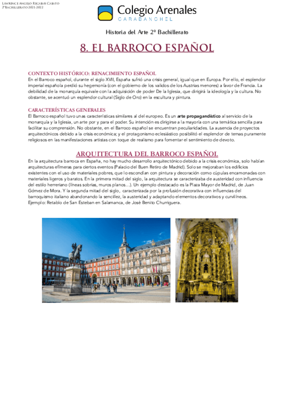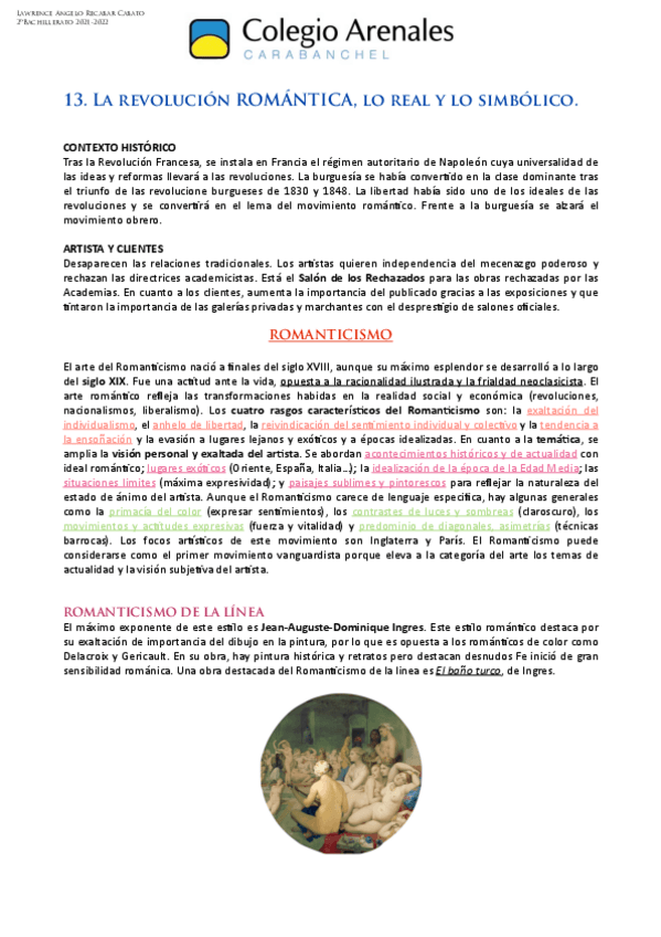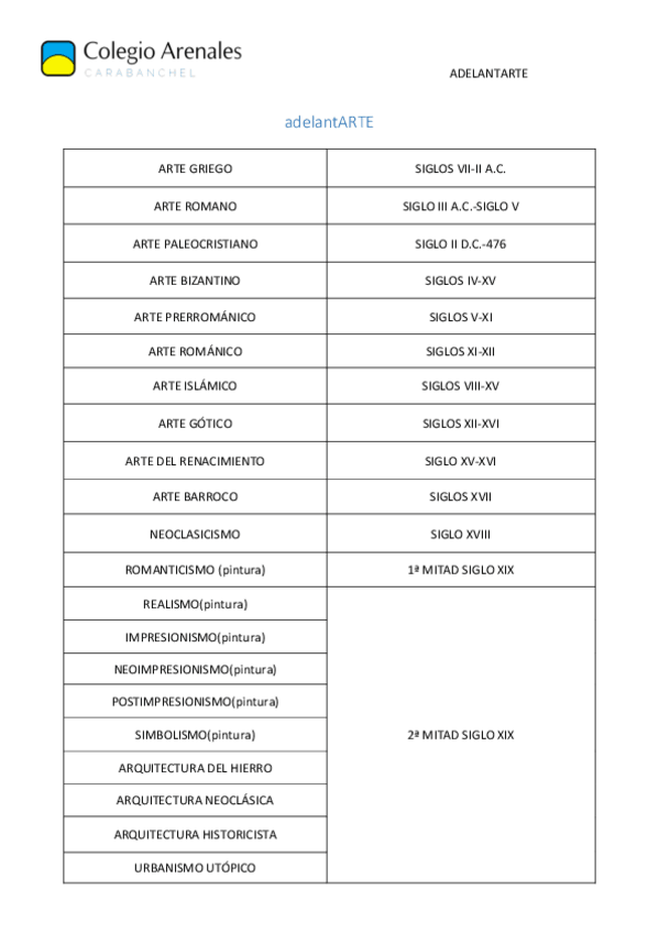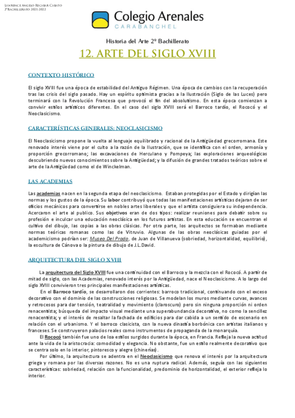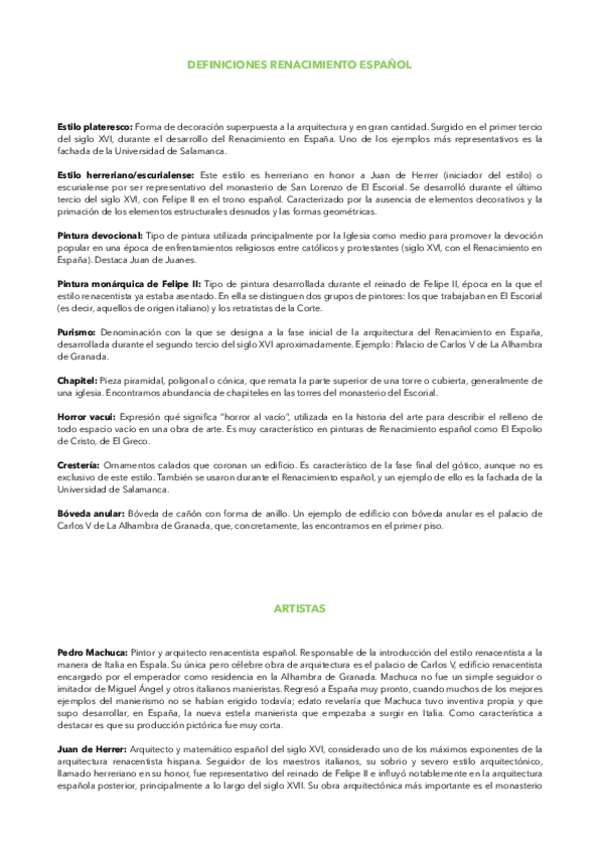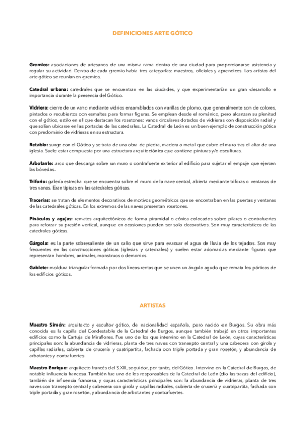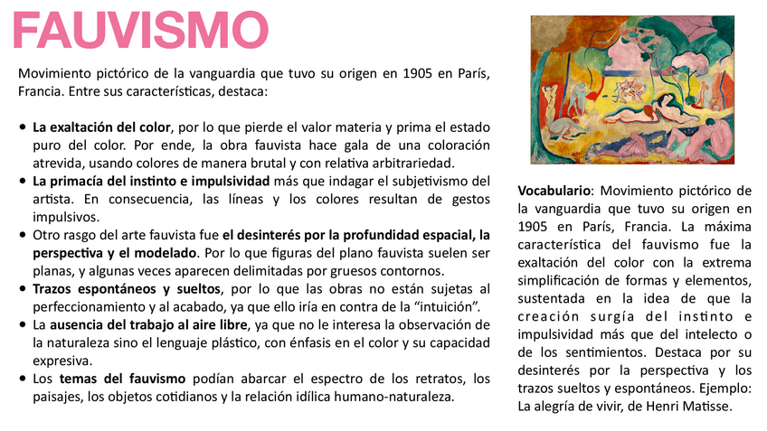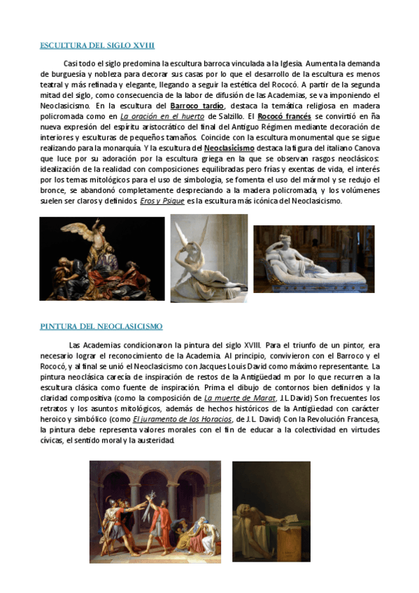 Vocabulario característico y artistas más representativos de algunos temas de Historia del Arte de 2º de Bachillerato. Enfocado a la EVAU.