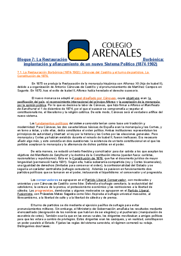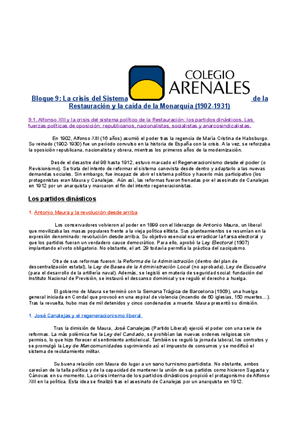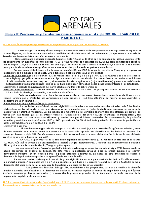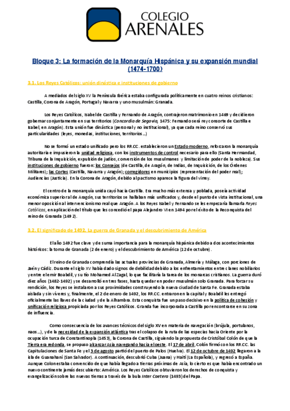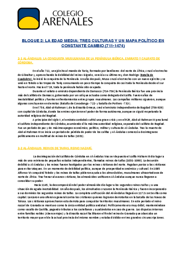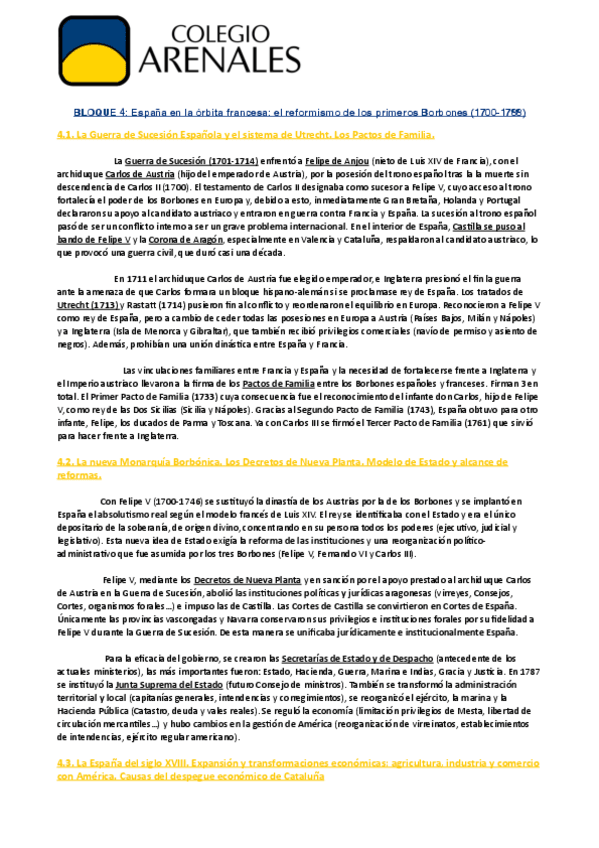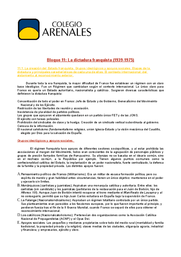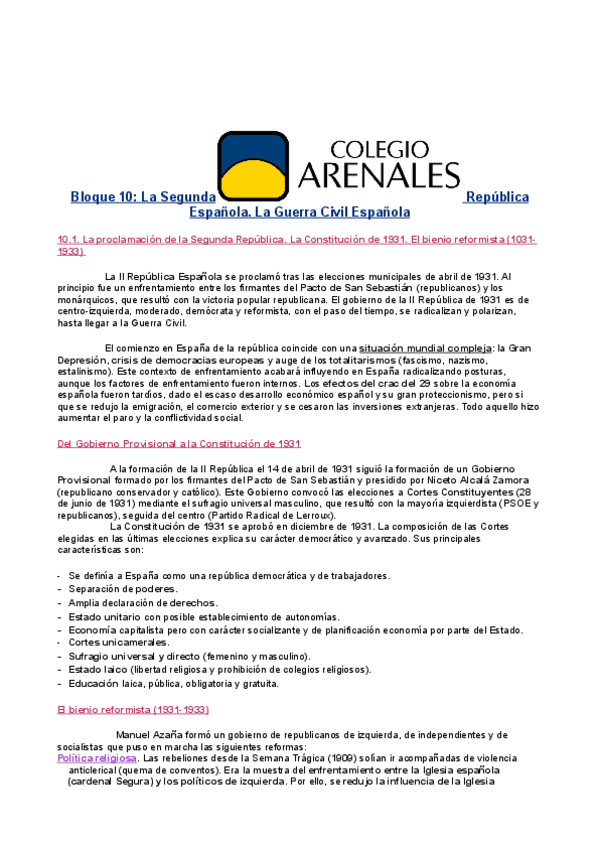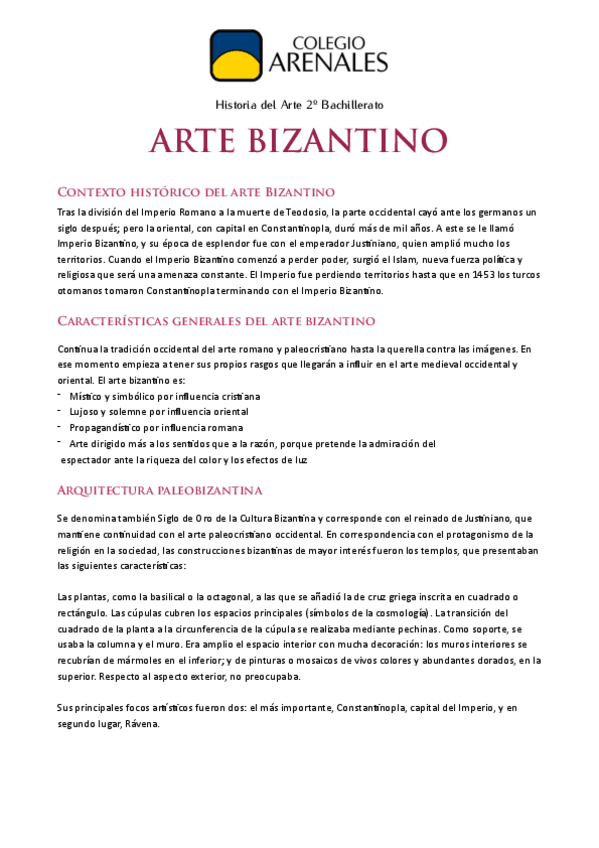 Asignaturas de Colegio Arenales Carabanchel - Bachillerato