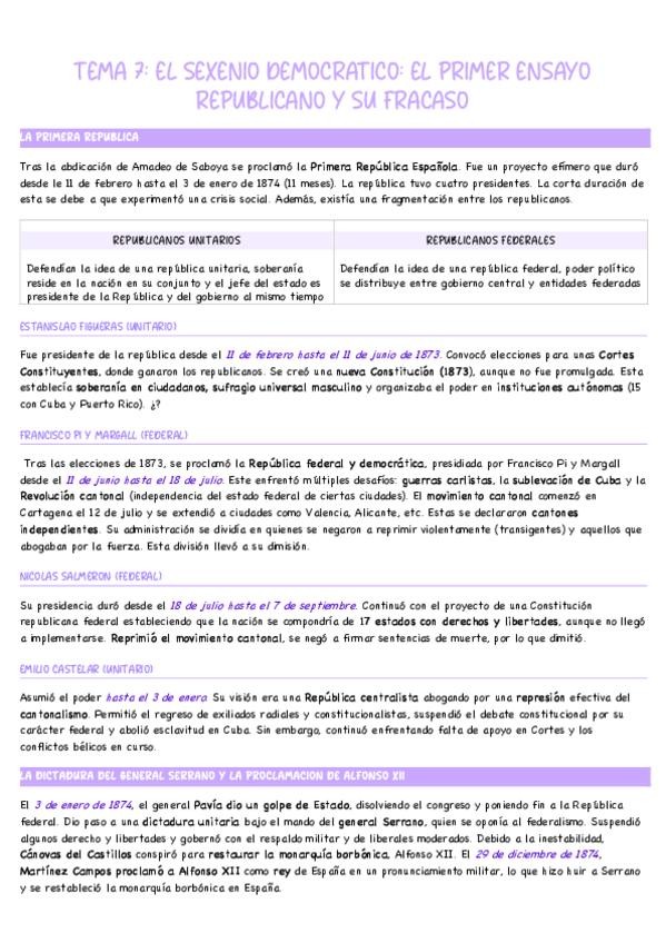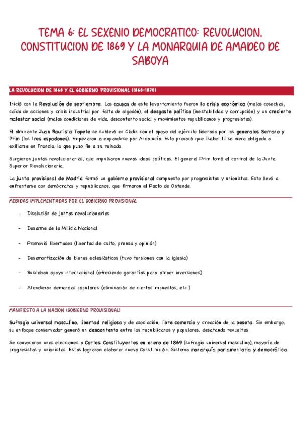 TEMA 6: EL SEXENIO DEMOCRATICO: REVOLUCION, CONSTITUCION DE 1869 Y LA MONARQUIA DE AMADEO DE SABOYA