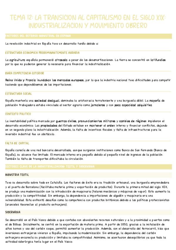 TEMA 12: LA TRANSICION AL CAPITALISMO EN EL SIGLO XIX: INDUSTRIALIZACION Y MOVIMIENTO OBRERO