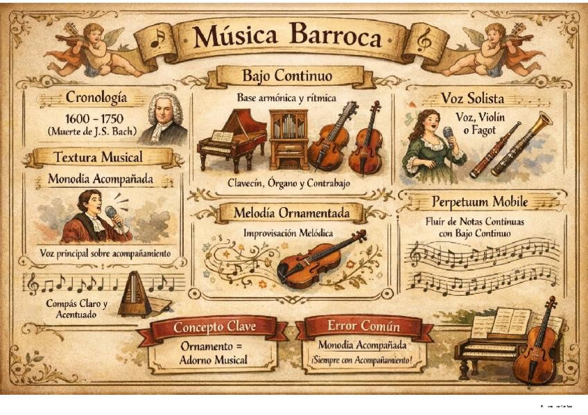 Todo el contenido de la música en el barroco. Tipo esquemática. Visual
