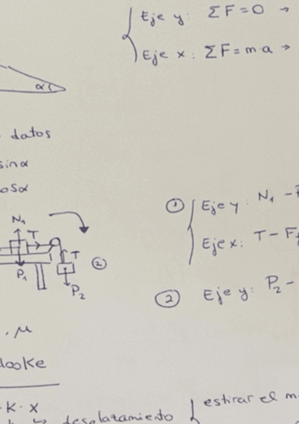 Formulas del plano inclinado, plano horizontal, ley de hooke y plano horizontal con tensión.