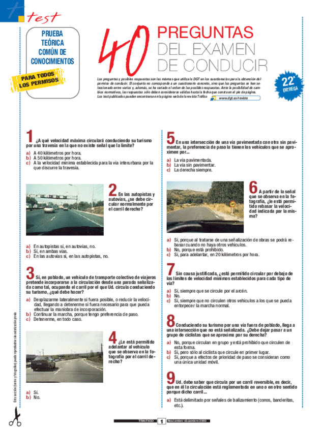 En este archivo podrás encontrar los aspectos más importantes de cada tema, aportante imágenes de las situaciones que nos podemos encontrar al conducir y test de examen.