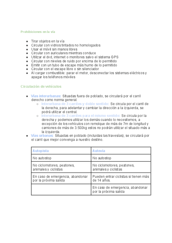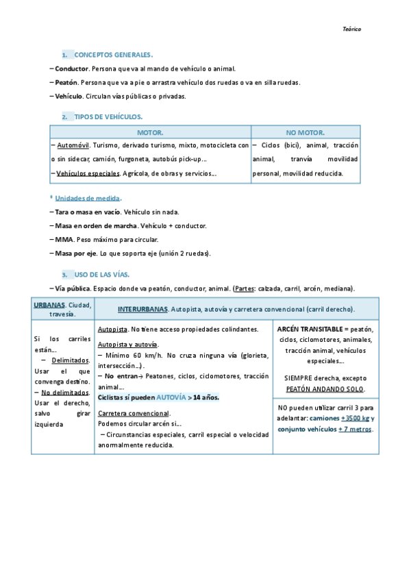 Apuntes teórico del coche (Conceptos generales + tipos de vehículos + uso de las vías)