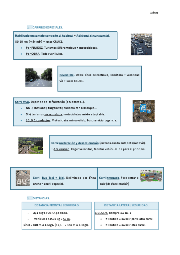 Apuntes teórico del coche (Carriles especiales + distancias)