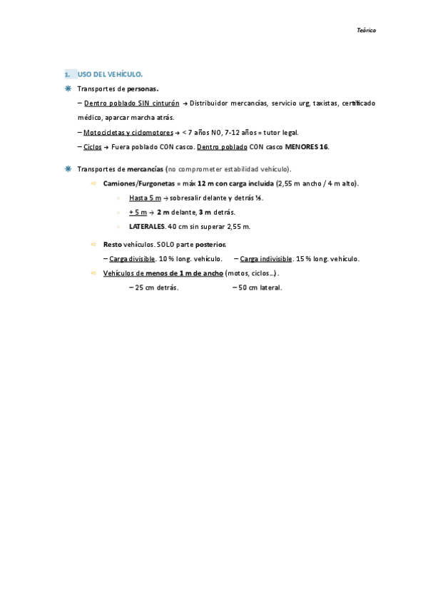 Apuntes teórico del coche (Uso del vehículo - Transporte de personas + mercancías).