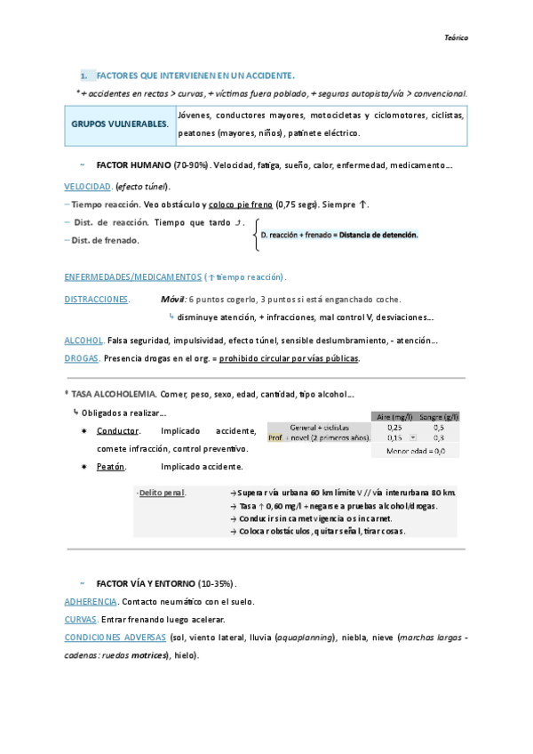 Apuntes teórico del coche (Factor humano + vía y entorno + vehículo).