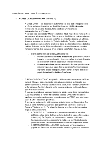 APUNTES DA CRISE DO 98 Á GUERRA CIVIL