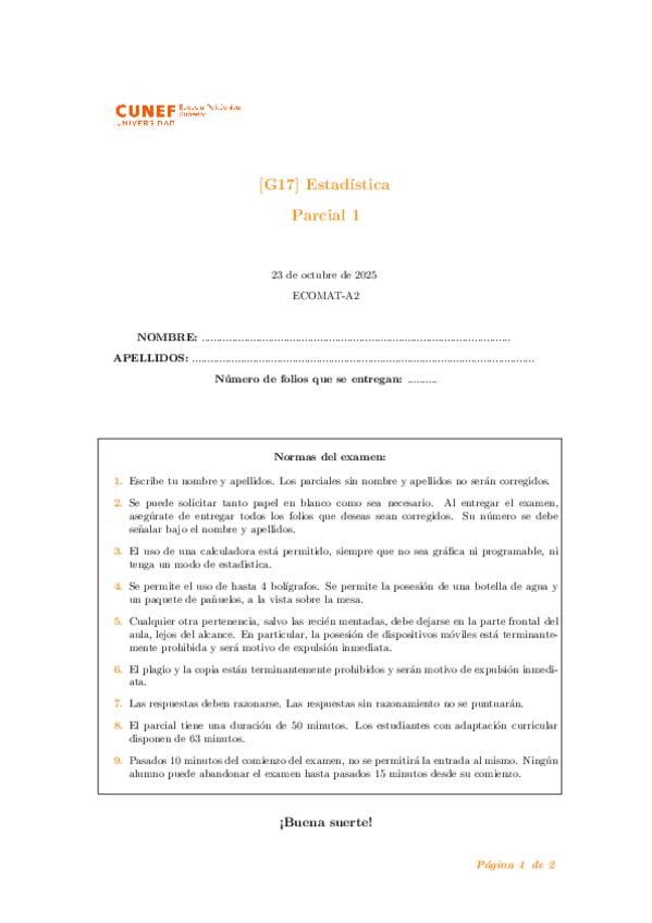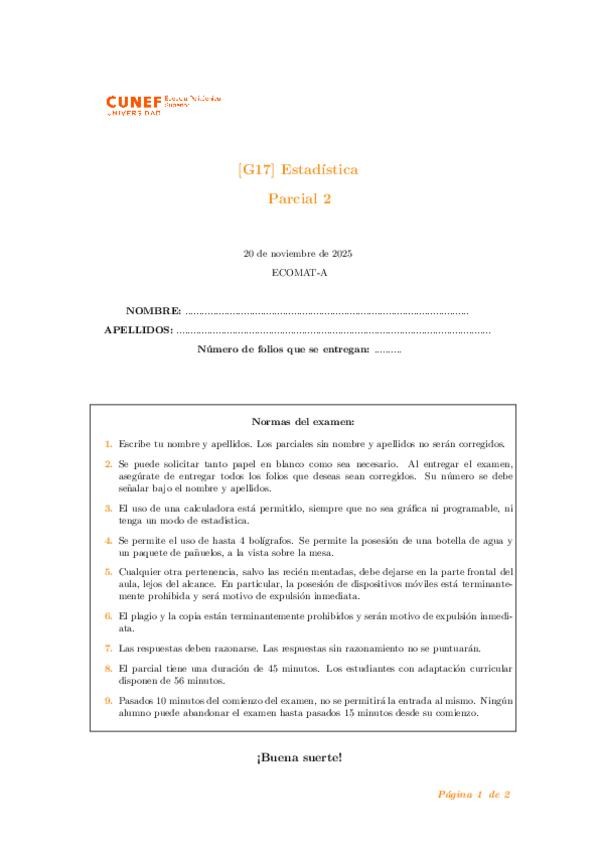 He publicado nuevos examenes de 1º Estadística: Parcial-2-solucion.pdf