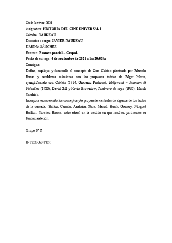 He publicado nuevos examenes de 2º HISTORIA DEL CINE UNIVERSAL I: HCUI - ( Parcial Único ) - Nota 7.pdf