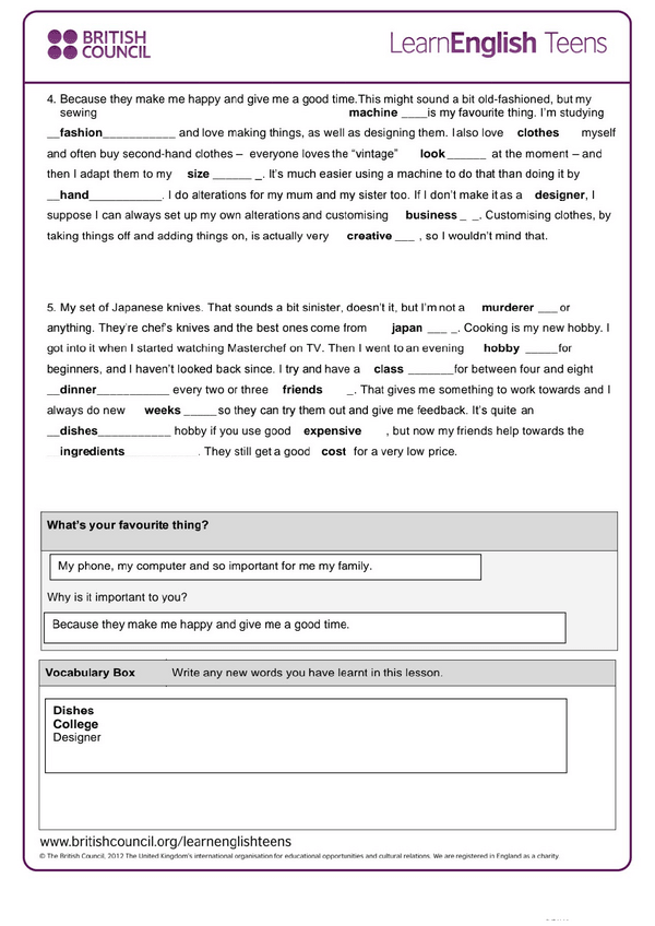 He publicado nuevos apuntes de 4º Inglés universitario B1 I: favourite things