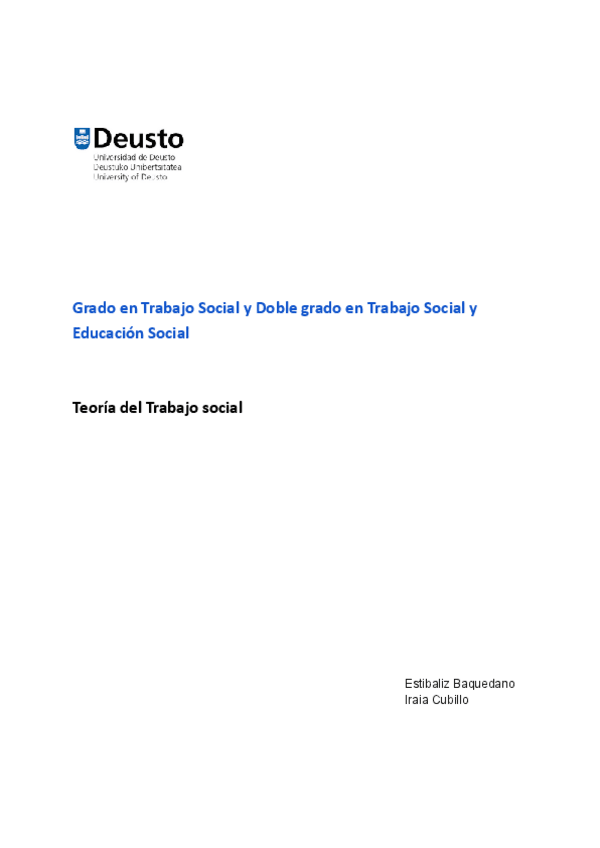 Asignaturas de Doble Grado en Educación Social y Trabajo Social (DEUSTO)