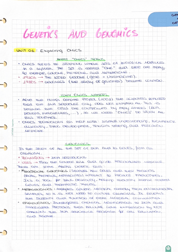 He publicado nuevos apuntes de 3º Human Genetics and Genomics: Unit-01-Exploring-OMICS.pdf