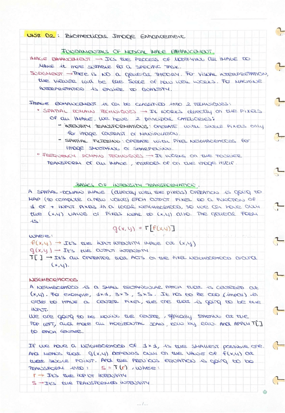 He publicado nuevos apuntes de 3º Biomedical Image Analysis and Processing: Unit-02-Biomedical-Image-Enhancement.pdf