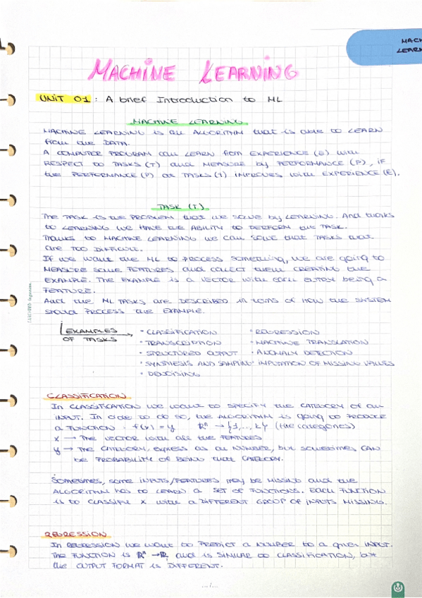 He publicado nuevos apuntes de 3º Machine Learning: Unit-1-A-brief-Introduction-to-ML.pdf