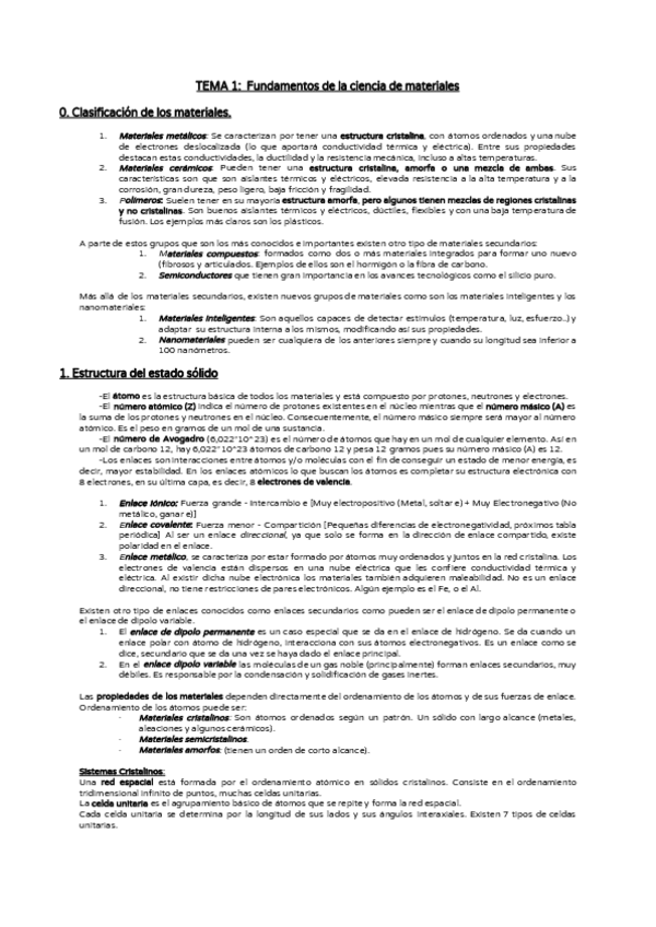 He publicado nuevos apuntes de 2º Fundamentos de Ciencia de Materiales: Tema-1-3-Materiales-Resumen.pdf