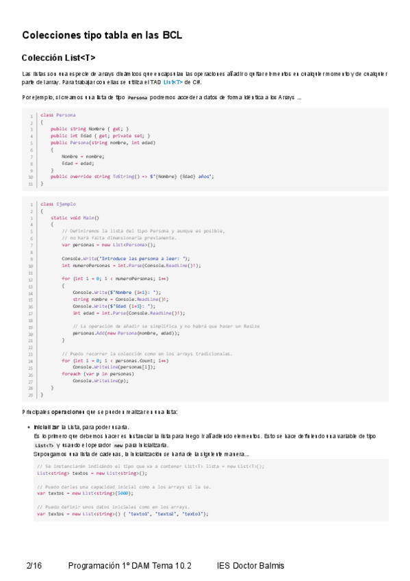 He publicado nuevos apuntes de Programación: Ej01OperacionesConListBCL.cs