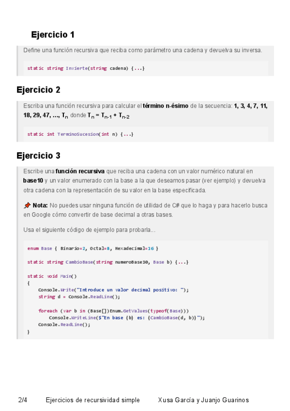 He publicado nuevos apuntes de Programación: 5ejerciciosrecursividadsimple.pdf