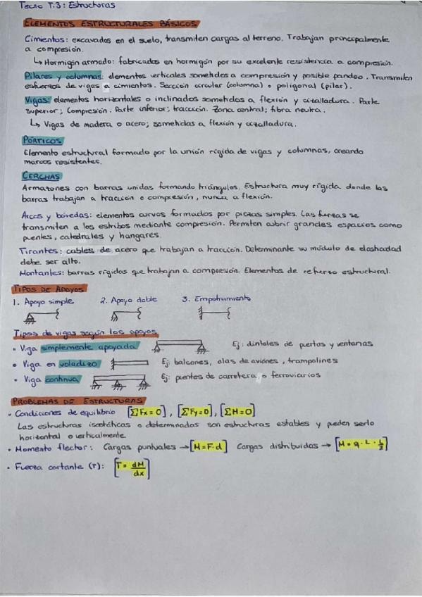 Elementos estructurales, tipos de vigas y apoyos, tipos de cargas, tipos de esfuerzos, estabilidad y CGD (centro de gravedad) y formulario para problemas de estructuras.
