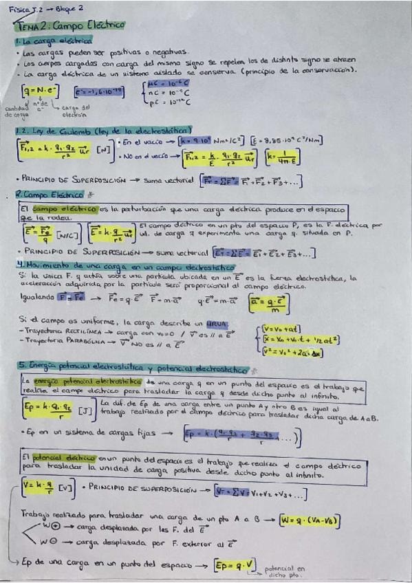 Ley de Coulomb, campo eléctrico, energía potencial electrostática, potencial electrostático, movimiento de partículas.