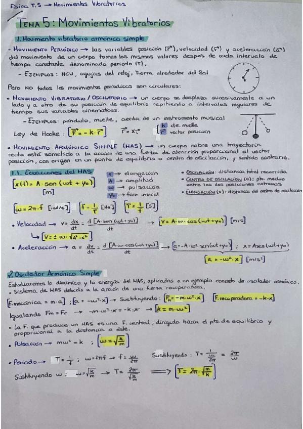 Movimiento vibratorio armónico simple, ecuaciones del MAS, oscilador armónico simple, energía del oscilador armónico simple, péndulo simple.