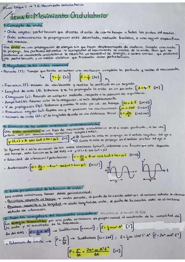 Magnitudes de las ondas armónicas, ecuación de las ondas armónicas unidimensionales, aspectos energéticos del movimiento ondulatorio, intensidad de onda, amortiguación de onda, ondas sonoras.