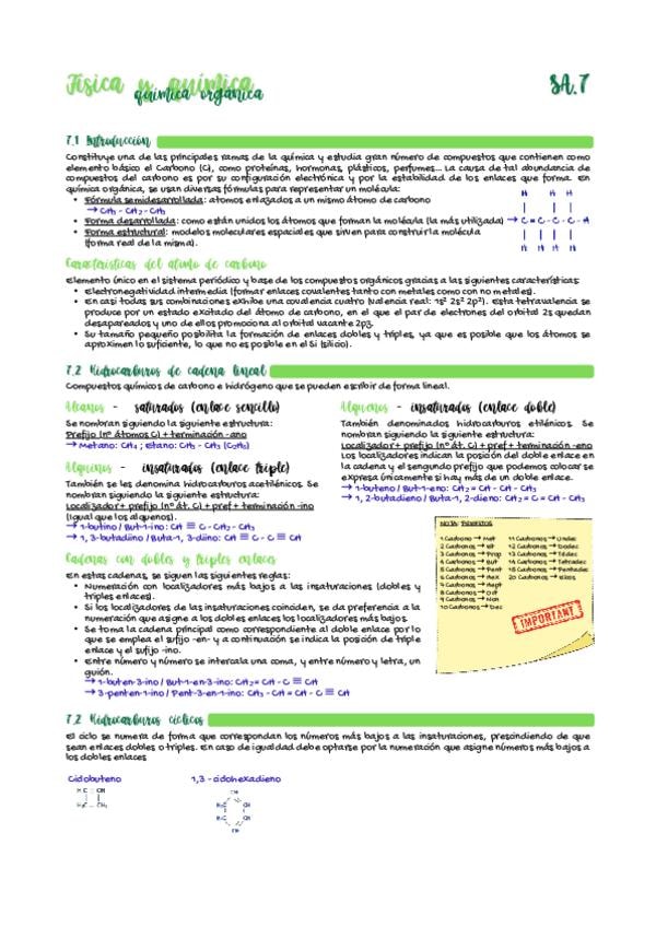 Apuntes sobre formulación orgánica (hidrocarburos saturados e insaturados, cíclicos, aromáticos, radicales...), nivel 1º de Bachillerato.