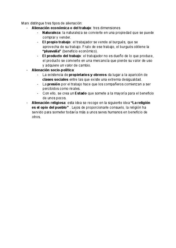 Conceptos Marx. Historia de la Filosofía 2 bachillerato