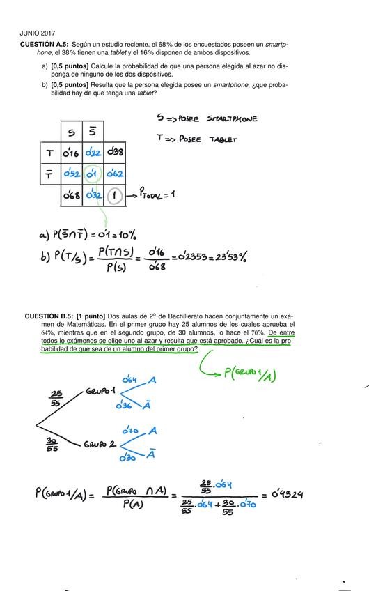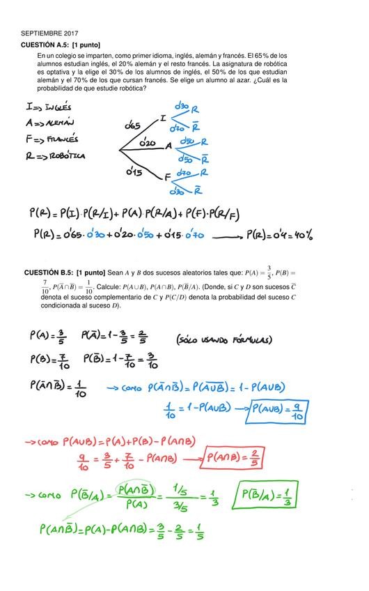 Ejercicios resueltos del bloque de probabilidad para la Prueba de Acceso a la Universidad en Murcia desde 2017 hasta 2025.