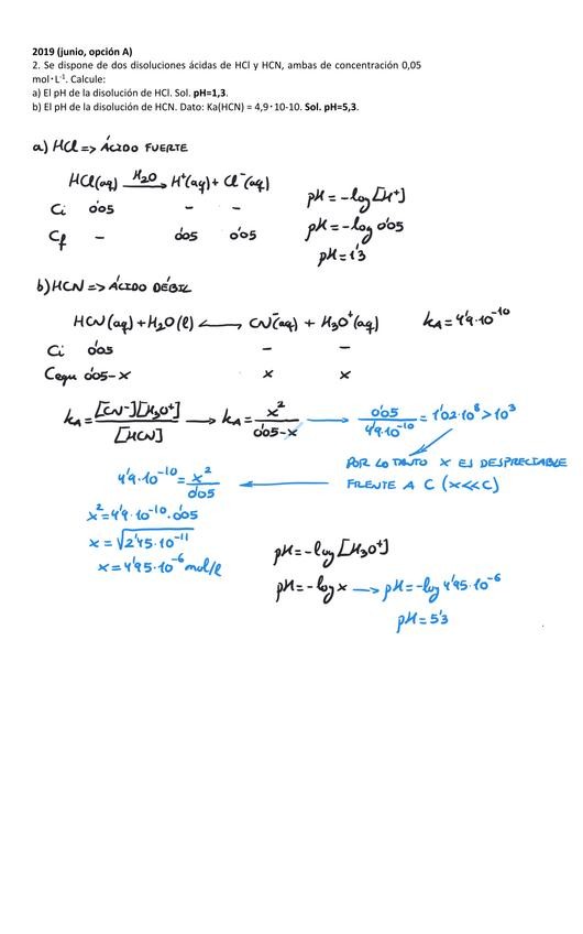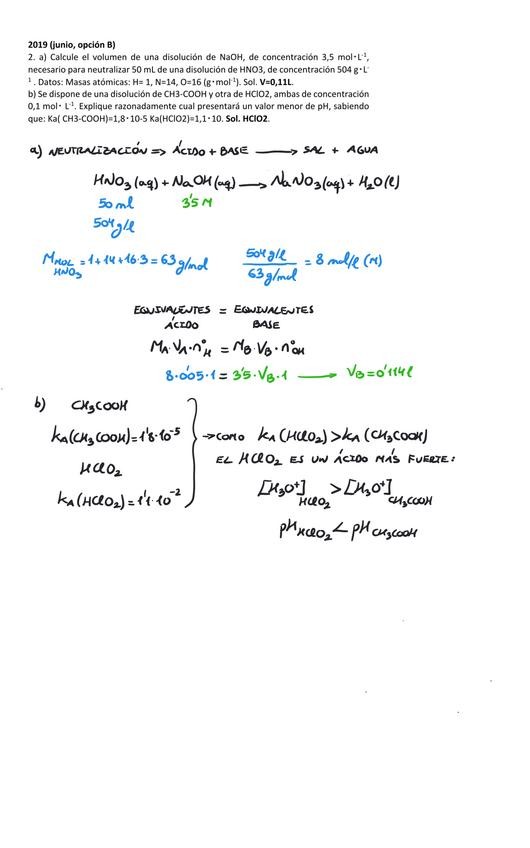 Ejercicios resueltos de ácido base para la Preparación de la Prueba de Acceso a la Universidad en Murcia desde 2019 a 2025