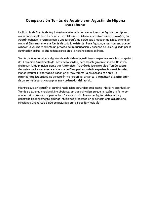 Relación de Agustín de Hipona con Tomas de Aquino pregunta PAU