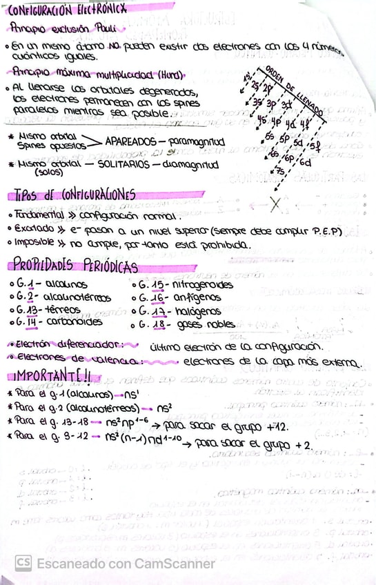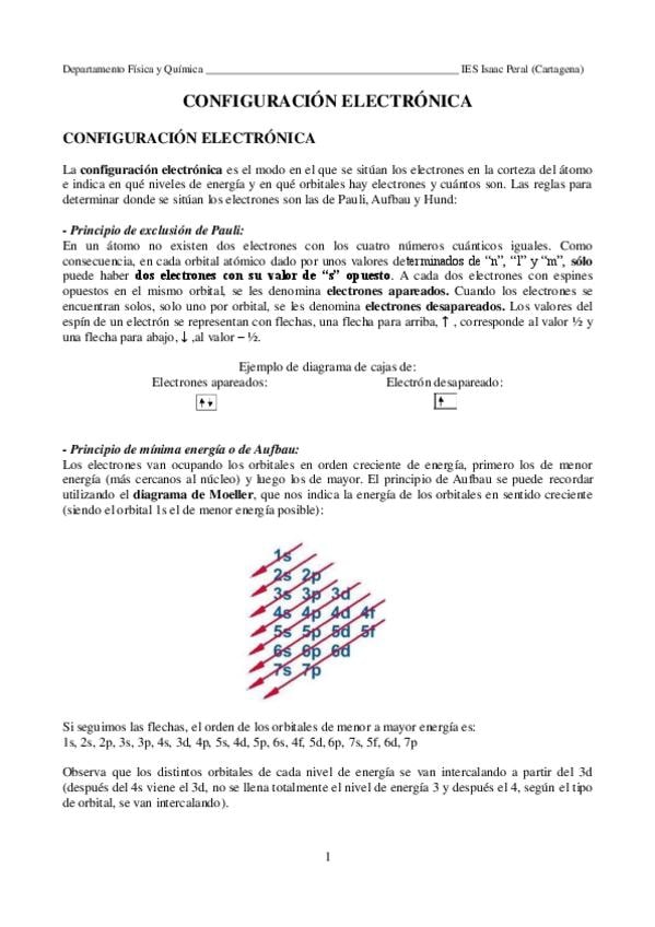Resumen completo de configuración electrónica: principios de Pauli, Aufbau y Hund, diagrama de Moeller, configuración abreviada y relación con la tabla periódica. Perfecto para aprender desde cero y dominar ejercicios de examen.