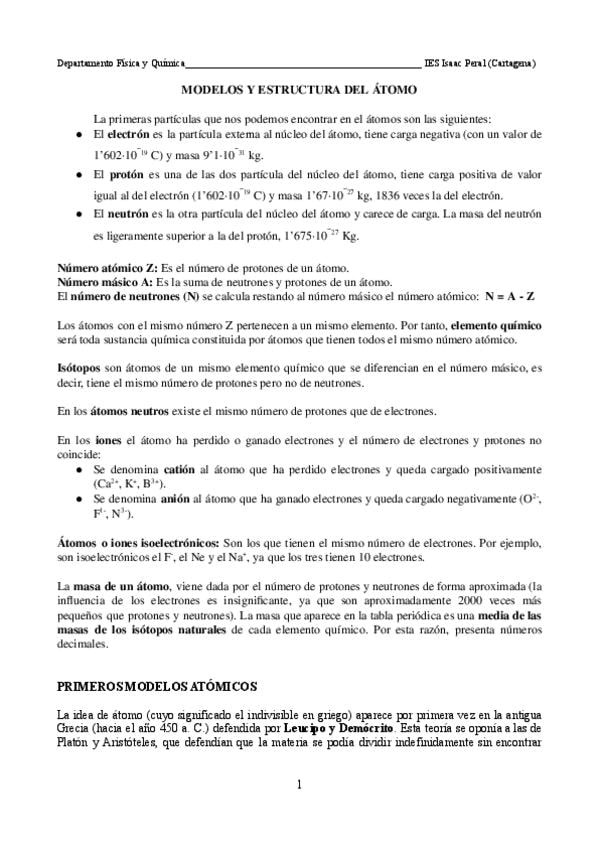Unidad 1 - estructura atómica y enlace (2º bachillerato)