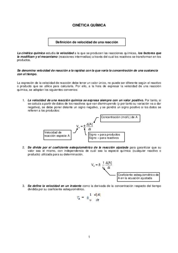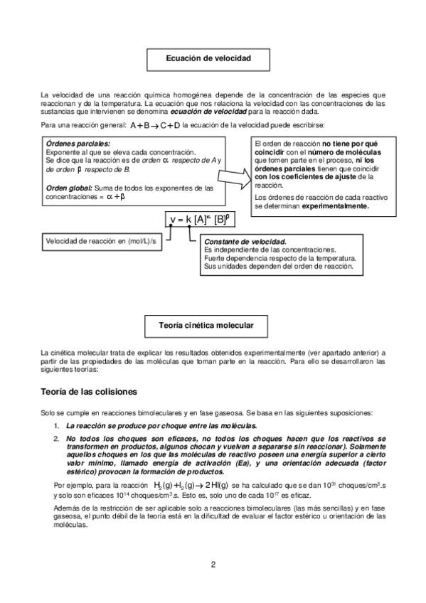 Resumen claro de cinética química: velocidad de reacción, ecuación de velocidad, teoría de colisiones y energía de activación. Incluye factores que afectan a la velocidad y ecuación de Arrhenius. Ideal para entender teoría + resolver preguntas de examen