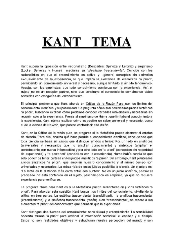 Temario completo de Kant calificado con un 10 preparado para el examen PAU pregunta a pregunta.