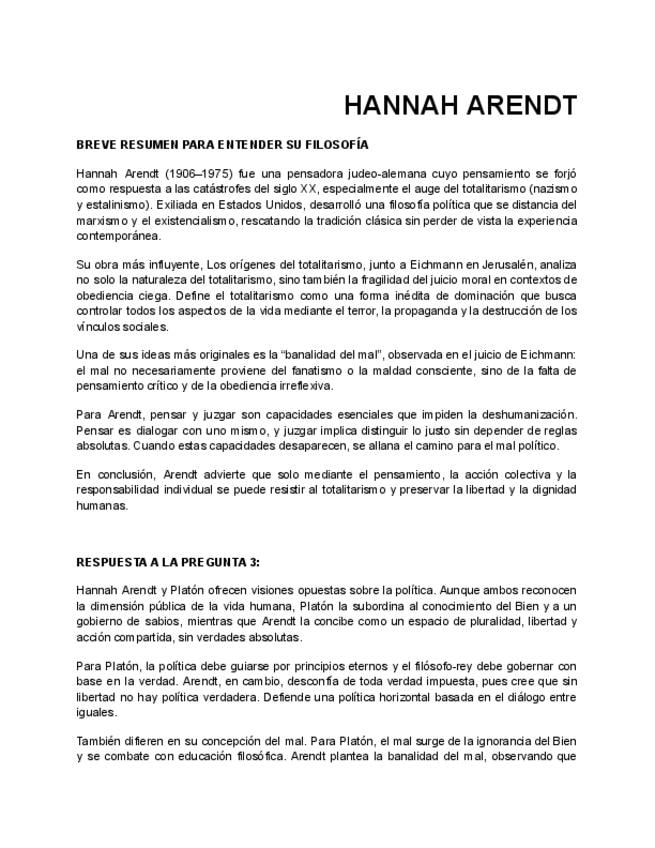 Breve resumen para entender la filosofía de Hannah Arendt y la comparativa de Hannah Arendt con Platón