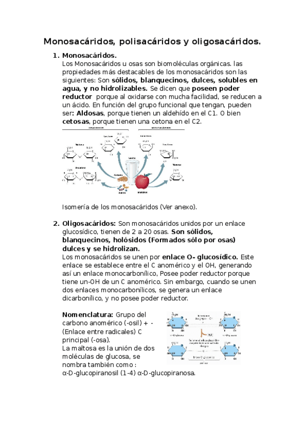 ¿Qué son los glúcidos?. Este documento te ayudará a saber los monosacáridos, oligosacáridos y polisacáridos de una manera resumida