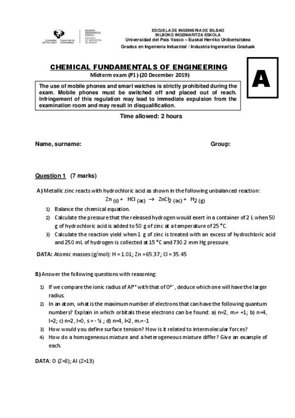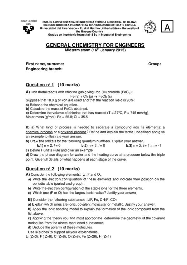 He publicado nuevos examenes de 1º Fundamentos Químicos de la Ingeniería: 1. parciales ingles
