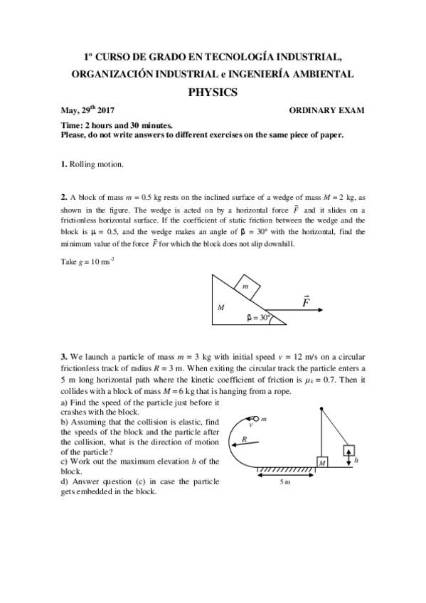 Examen física mayo 2016 bilingüe con soluciones