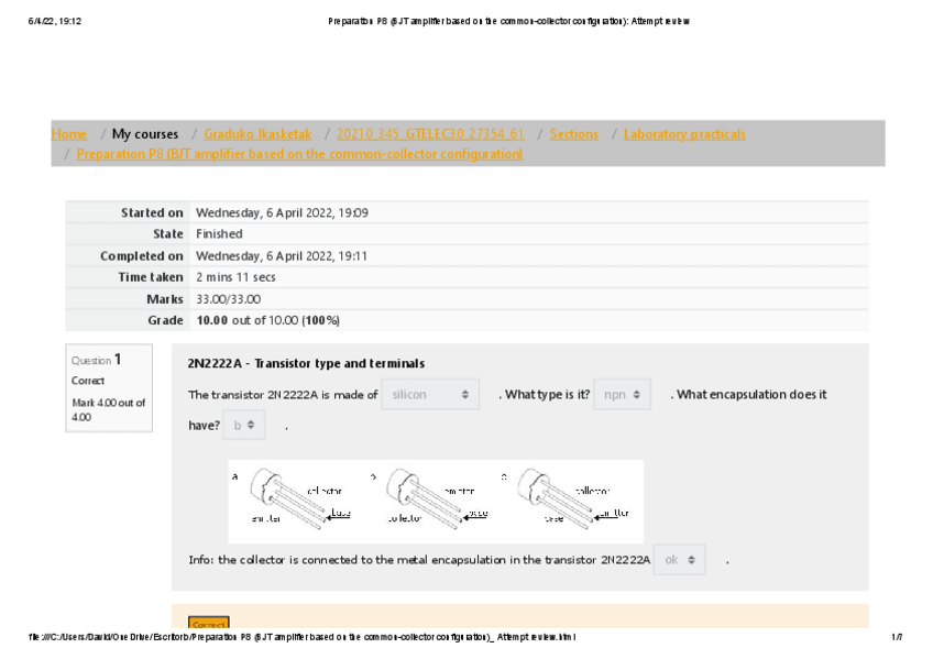 He publicado nuevos apuntes de 1º Electrónica Básica: Reporte laboratorio 4