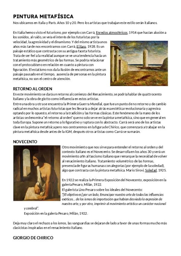Aquí están todos los repasos de los apuntes del segundo cuatrimestre de historia del arte. Tema 16 - pintura metafísica